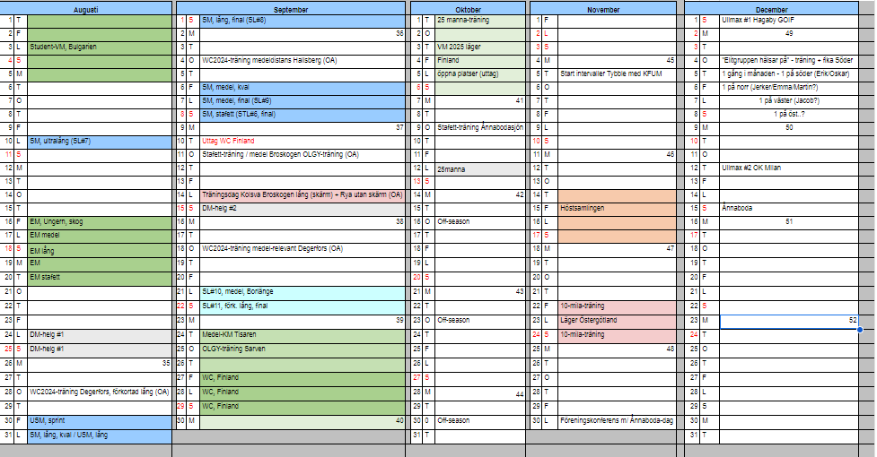Under tävlingsperiod ser träningsveckorna ut så här.