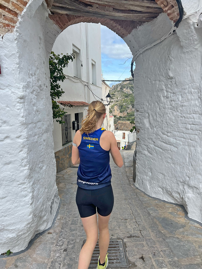 Elsa Sonesson under ett sprintpass i Casares. ”En väldigt häftig sprintby”, berättar Elsa. Bild: August Mollén.