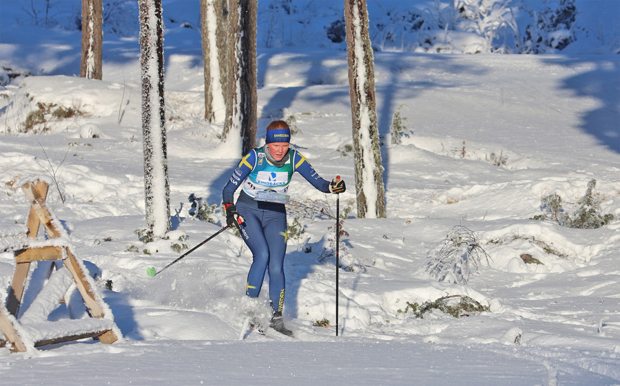 Bildtext toppbild: Minna Turesson på väg mot sista kontrollen och seger på JVM-sprinten i Luleå. Bild: Johan Trygg.