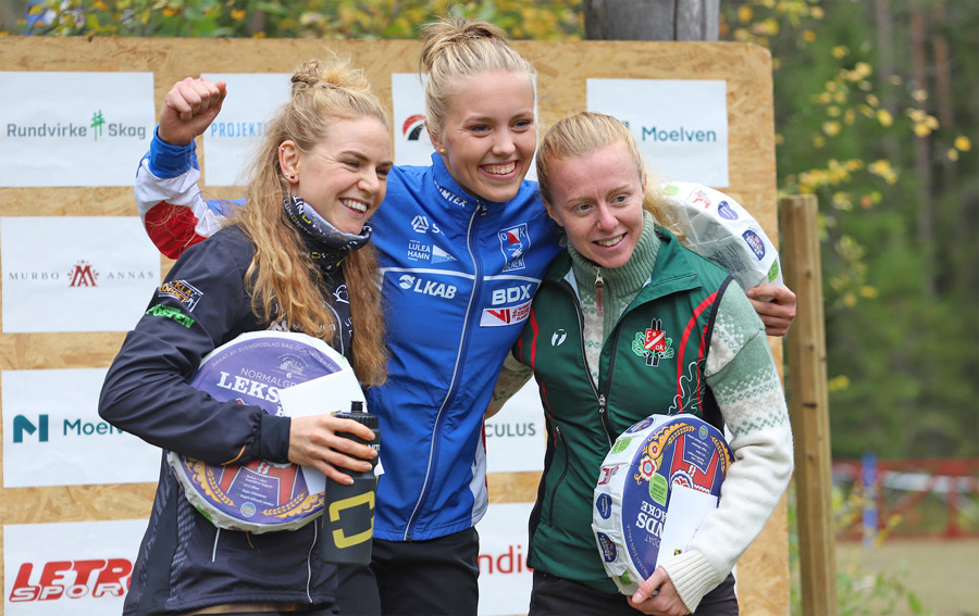 Fanny Sundblad, längst till höger, tillsammans med Karolin Ohlsson och Hanna Lundberg efter sin tredjeplats på Swedish League hösten 2024. Bild: Johan Trygg.