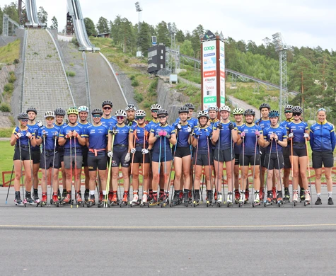 Skidorienteringslandslaget ger sig ut på rullskidbanan vid Lugnet. Bild: Johan Trygg.