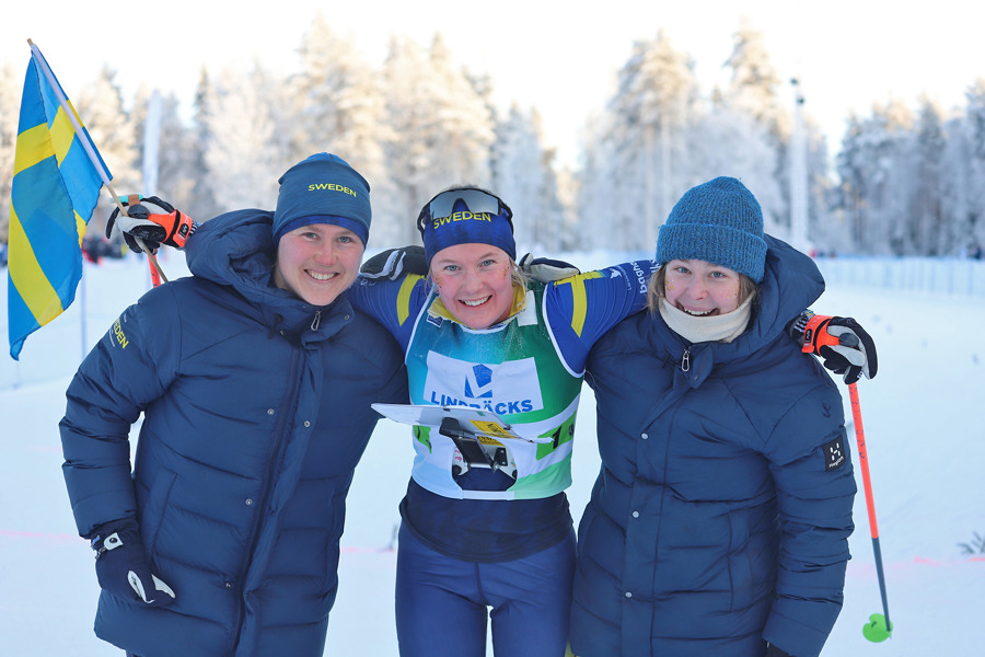 Glada världscupsegrare. Frida Sandberg, Ella Turesson och Anna Aasa. Bild: Johan Trygg.