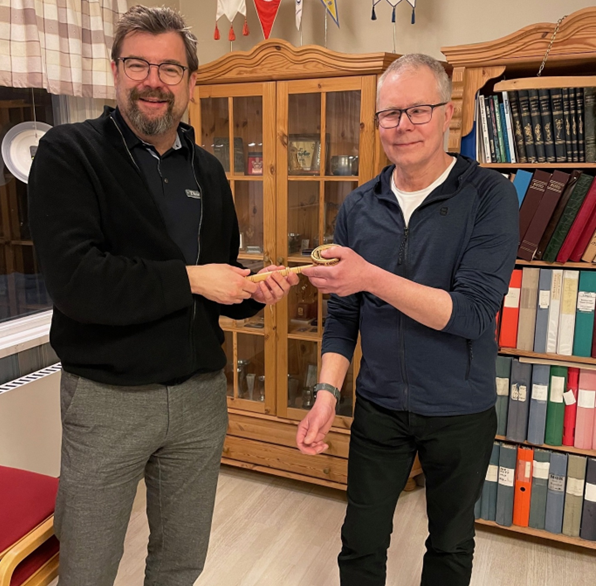 På bilden ovan överlämnar Anders Sahlén ordförandeklubban til Per "Babbe" Sundström.